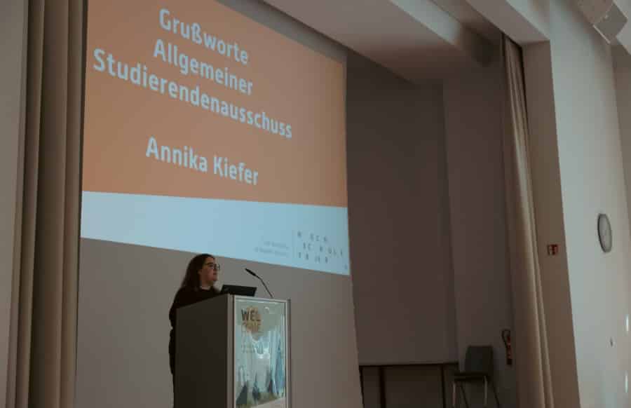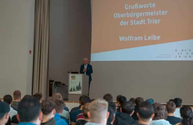 Gemeinsam mit ihr richteten auch Oberbürgermeister Wolfram Leibe, Kulturdezernent der Stadt Trier, Markus Nöhl, Herr Thomas Vatheuer vom Studierendenwerk, sowie Annika Kiefer vom allgemeinen Studierendenausschuss herzliche Grußworte an die neuen Studierenden. Alle zeigten sich hocherfreut darüber, dass sich so viele junge Menschen für ein Studium an der Hochschule Trier entschieden haben.