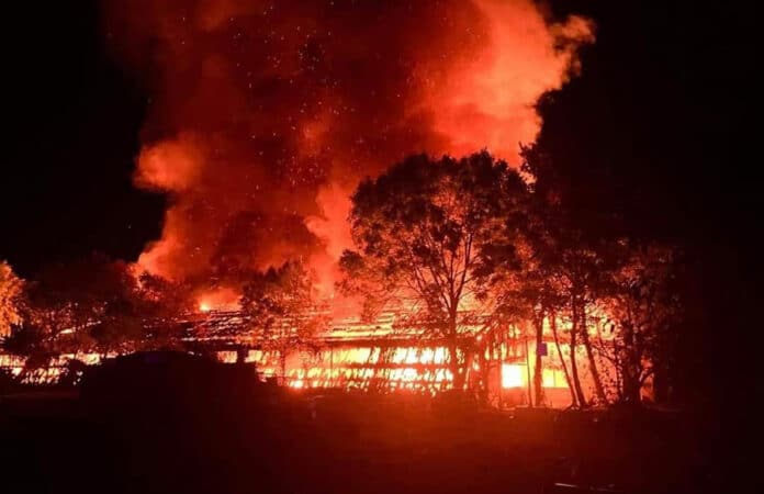 Das Feuer war am frühen Morgen ausgebrochen, noch am Nachmittag war die Feuerwehr mit der Löschung von Glutnestern beschäftigt. Die Brandursache und die Schadenshöhe waren zunächst unklar. Im Einsatz waren 16 Feuerwehren aus den umliegenden Gemeinden.