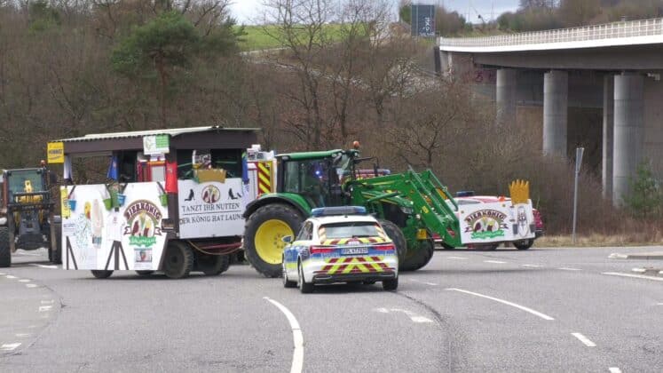 NANNHAUSEN/KIRCHBERG Wie die Polizei in Simmern mitteilt, befuhr am heutigen Sonntag ein Fahrzeuggespann, bestehend aus Traktor und Motivwagen gegen 13.00 Uhr die L 228 aus Unzenberg kommend in Richtung K3/Kirchberg.