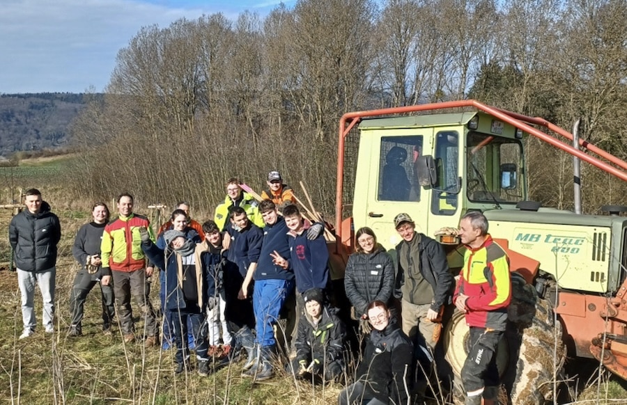 Um die Vielfalt und den Artenreichtum zu fördern, hat das Forstamt eine Mischung aus Spitz- und Feldahorn, Traubeneiche und Winterlinde sowie verschiedenen regionaltypischen Obstbäumen besorgt. Mit Hohlspaten, Hacken und Schaufeln haben die jungen Menschen gemeinsam Löcher gegraben, die Setzlinge eingepflanzt und entsprechende Schutzvorkehrungen vor Wildtieren getroffen.