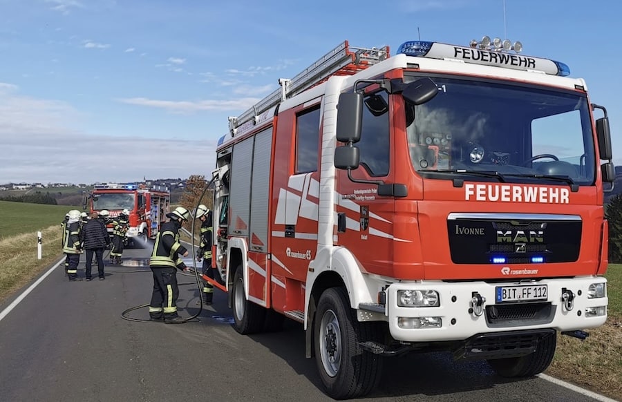 Während der Fahrt stieg Rauch aus dem Fahrzeug. Als der Fahrer das Fahrzeug stoppte, kamen bereits Flammen aus dem Motorraum. Die über Notruf 112 herbeigerufenen Freiwilligen Feuerwehren aus Brandscheid und Bleialf löschten den Brand schnell. Es wurde niemand verletzt.