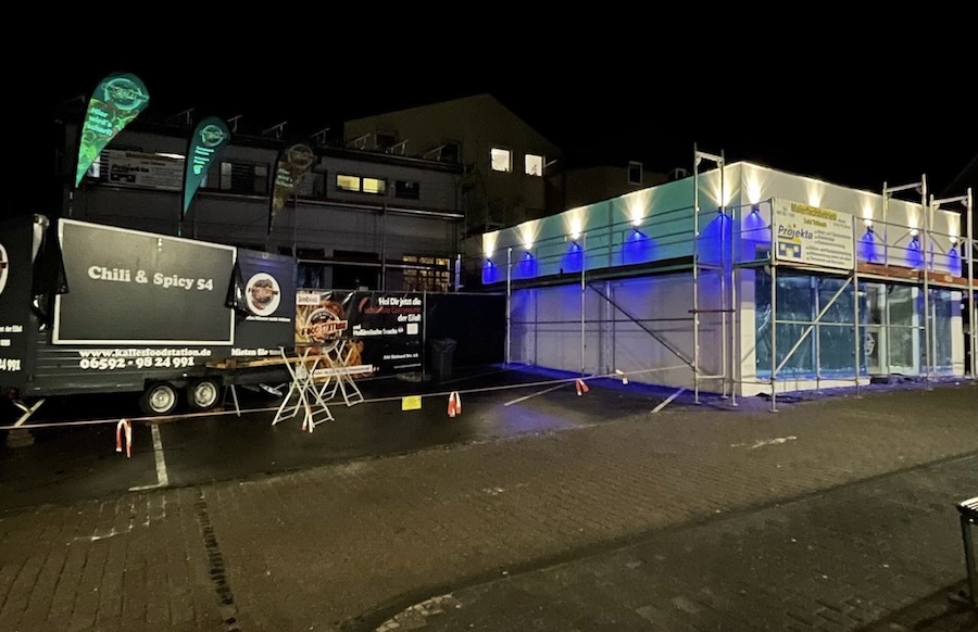 Noch während Gruschka im Januar und Februar mit dem Foodtruck auf zahlreichen Karnevalssitzungen gastierte, begann er mit dem Umbau in der vormaligen Bäckerei: Nach Feierabend, genau wie seinerzeit beim Bau des Foodtrucks, gestaltete der gelernte Dachdecker die Räumlichkeiten in Eigenregie zum Imbiss um: „Ich habe ein halbes Jahr lang jeden Tag 18 Stunden gearbeitet“, sagt der Inhaber – eine Energieleistung, die sich gelohnt hat, die Räume sind ausgesprochen gelungen. Lediglich die Verkabelung und die sanitären Einrichtungen wurden von Handwerksbetrieben ausgeführt. Bei den Verputzarbeiten wurde Gruschka zudem von einem Freund unterstützt. Sein besonderer Dank gilt daher allen, die zum Gelingen von Umbau und Umzug beigetragen haben, auch Stadtbürgermeister Friedhelm Marder und der Verwaltung der Verbandsgemeinde, die ebenfalls das Bauvorhaben nach Kräften unterstützt haben. Da eine komplette Nutzungsänderung erforderlich war, um aus der Bäckerei einen Gastronomiebetrieb zu machen, war die Umwandlung bauantragspflichtig.