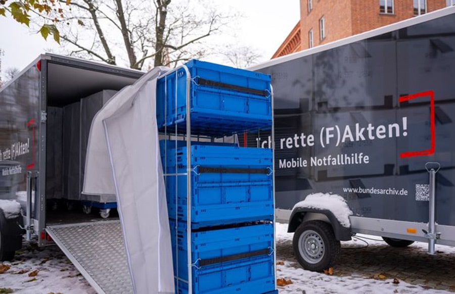 Das Bundesarchiv verfügt nach eigenen Angaben über drei solcher Anhänger, die neben Koblenz noch in Berlin und Freiburg stehen. «Mit so einem Anhänger sind wir mobil», sagte der Referatsleiter. «Wenn es irgendwo eine Großkatastrophe wie beispielsweise im Ahrtal gäbe, könnten sie zum Einsatz kommen.»