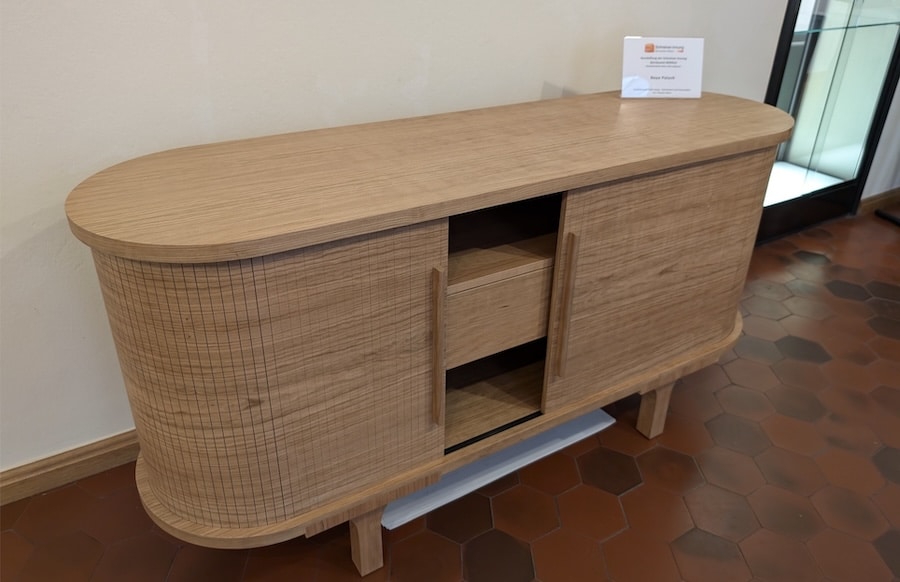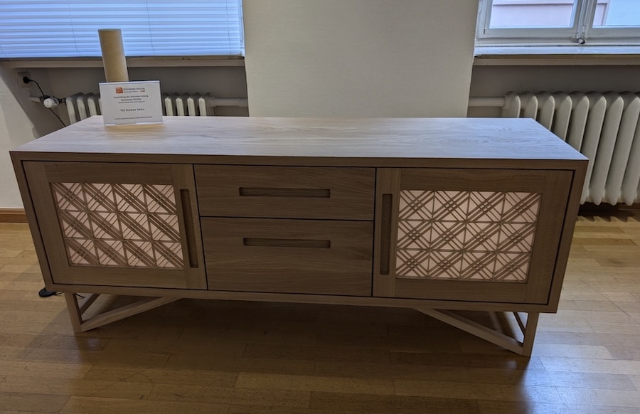 Bildunterzeile: Das Sideboard aus Eiche von Till Romeo Sehn wird ebenso beim Wettbewerb Gute Form teilnehmen. Sein Ausbildungsbetrieb ist die Möbelwerkstatt Gedert GmbH aus Starkenburg. Foto: Schreiner-Innung Bernkastel-Wittlich