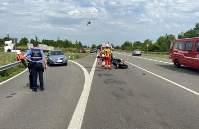 WACHENHEIM/BAD DÜRKHEIM. Wie die Polizeiinspektion Bad Dürkheim mitteilt, ereignete sich am heutigen Mittwochmittag, um 12:15 Uhr auf der B271 an der Anschlussstelle Wachenheim ein schwerer Verkehrsunfall mit einem beteiligten Motorradfahrer.