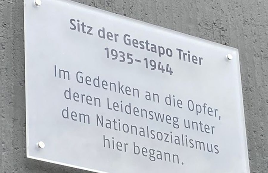 TRIER. Mit einer neuen Gedenktafel wird der Opfer der Gestapo in Trier gedacht. Die Tafel wurde an dem Gebäude angebracht, in dem sich von 1935 bis 1944 der Hauptsitz der Gestapo Trier befand.
