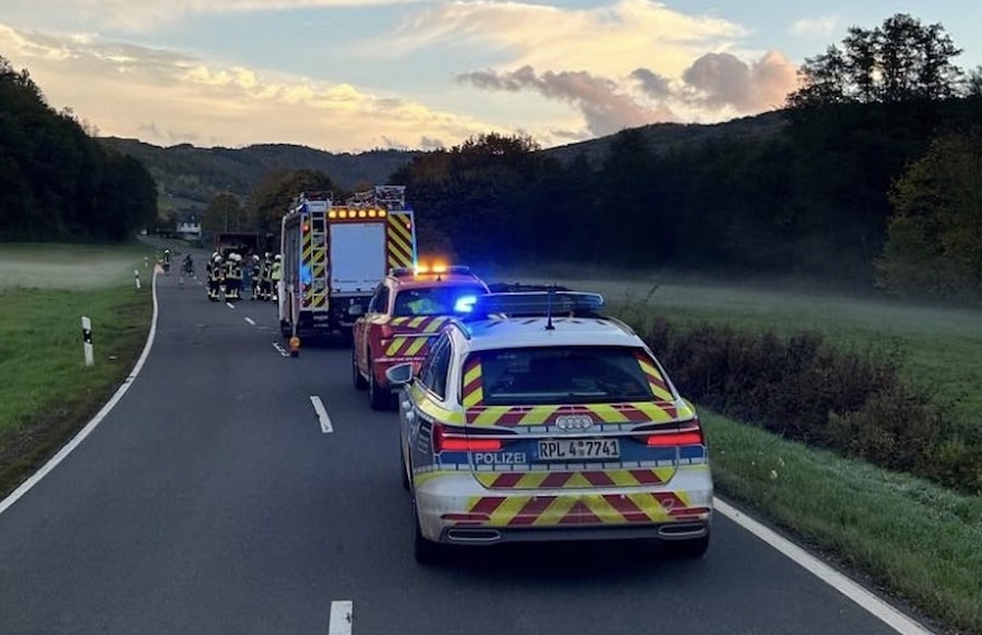 Im Einsatz waren die Feuerwehr Neumagen-Dhron, der Wehrleiter der VG Bernkastel-Kues, ein Rettungswagen, ein Notarzt mit Hubschrauber, die Straßenmeisterei Thalfang sowie die Polizei Bernkastel-Kues. (Quelle: dpa)