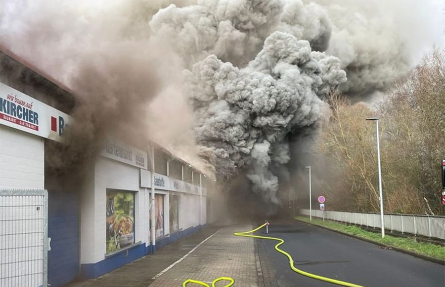 Laut Mitteilung wurde am Vormittag erst starker Rauch gemeldet, kurz darauf habe der Baumarkt in Vollbrand gestanden.