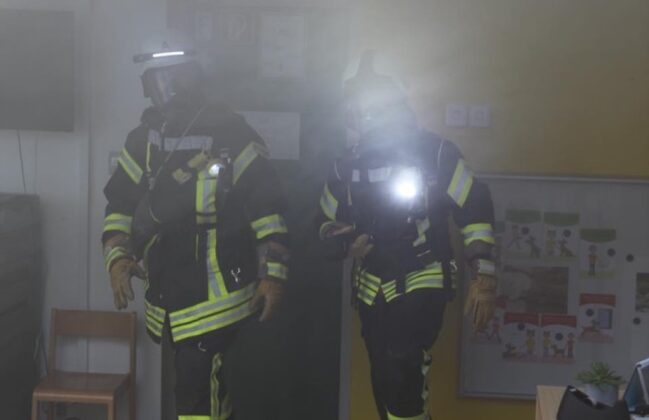 Mehrere Kinder und Betreuer mussten bei der Übung unter schwerem Atemschutz aus dem verrauchten Gebäude gerettet werden. Gleichzeitig wurde die Evakuierung der bereits geflüchteten Personen koordiniert. Durch die schnelle und professionelle Arbeit aller beteiligten Wehren konnte eine Brandausbreitung auf weitere Gebäudeteile verhindert werden.