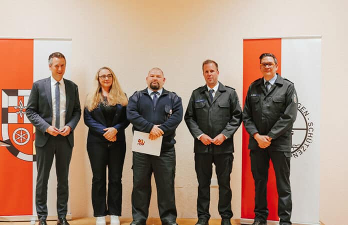 Laufeld: Im Rahmen des Empfangs fand auch die Verabschiedung von Andreas Becker statt, dessen Amtszeit als stellvertretender Wehrleiter nach 10 Jahren endete. Bürgermeister Manuel Follmann würdigte das wertvolle Engagement von Andreas Becker für das Feuerwehrwesen. Aufgrund seiner langjährigen Erfahrung und seines hohen Ausbildungsstandes habe er sich in besonderer Weise für die Position des stellvertretenden Wehrleiters qualifiziert. „Sein Einsatz erstreckte sich über eine Vielzahl verantwortungsvoller Aufgaben, darunter insbesondere die Nachwuchsgewinnung. Wir danken ihm für seine Loyalität und die stets vertrauensvolle Zusammenarbeit“, so der Bürgermeister. Wehrleiter David Backendorf schloss sich den Dankesworten an.