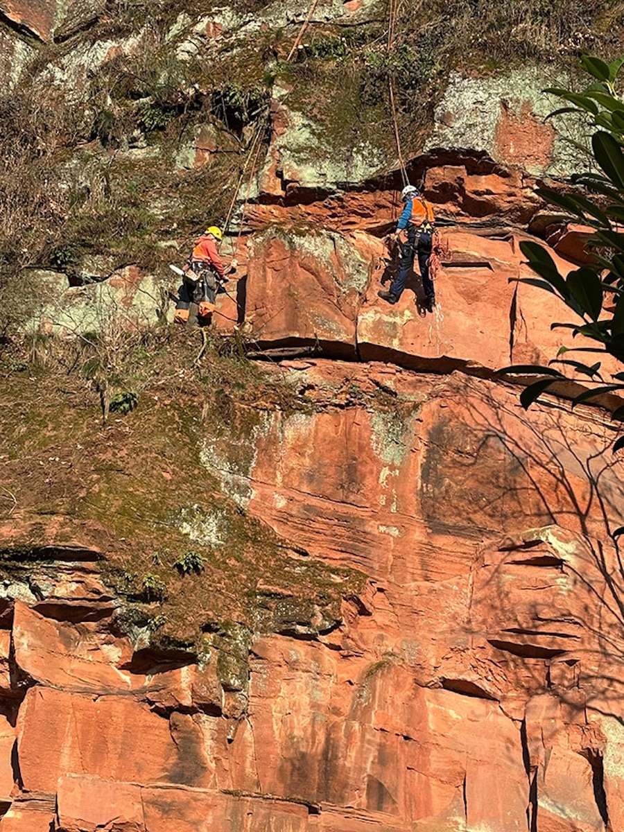 Spezialteam entfernt Felsblock – mit Kletterausrüstung und Wagenheber