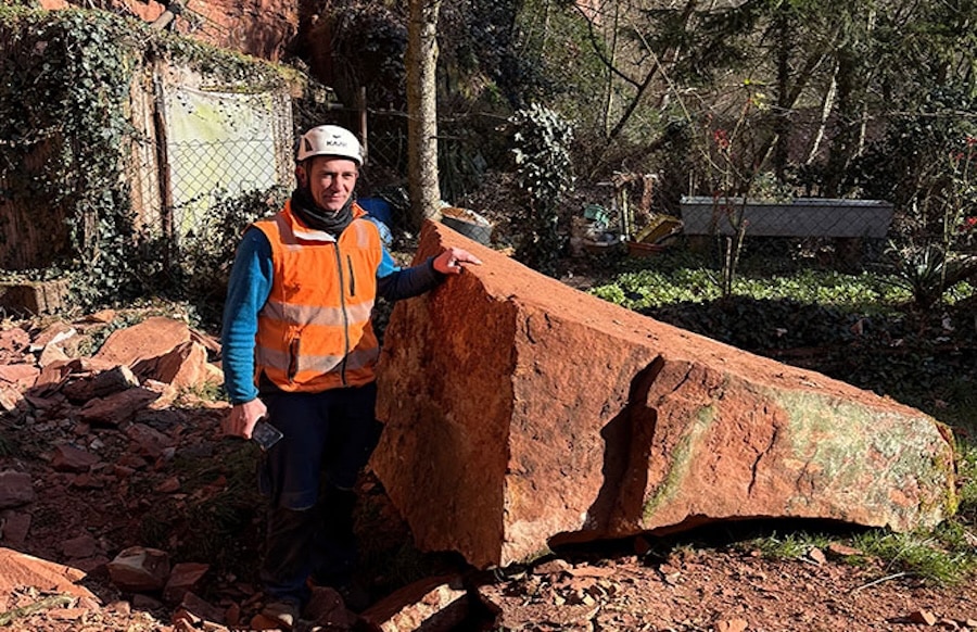 Die Alarmierung erfolgte im Februar, als Mitarbeitende von StadtRaum Trier im Zuge der Untersuchung einer Stützmauer großflächig Efeu von der Natursteinmauer und dem darüberliegenden Hang entfernten. Dabei entdeckten sie eine deutliche Gesteinsabspaltung. Eine Drohnenuntersuchung bestätigte den Verdacht: Ein rund zwei Kubikmeter großer Felsblock hatte sich bereits weitgehend gelöst und stellte eine erhebliche Gefahr für die darunterliegenden Gärten und ein Wohnhaus dar.