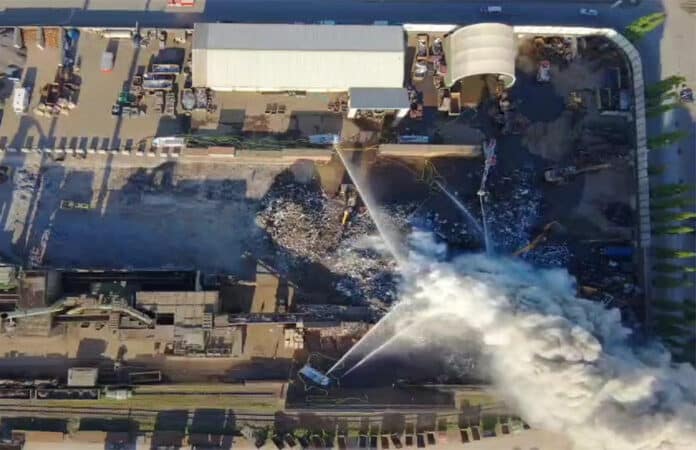 TRIER. Am Montagnachmittag kam es in einem Entsorgungsbetrieb am Trierer Hafen zu einem Großbrand. Ein Außenlager des Betriebes mit Metallschrott steht dort in Flammen.