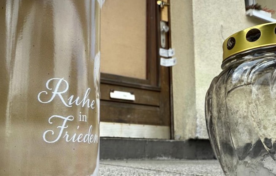 Vor dem Wohnhaus stehen auch mehr als vier Wochen nach der Tat noch Blumen und Kerzen. Die Garage und die Haustür sind weiterhin versiegelt.