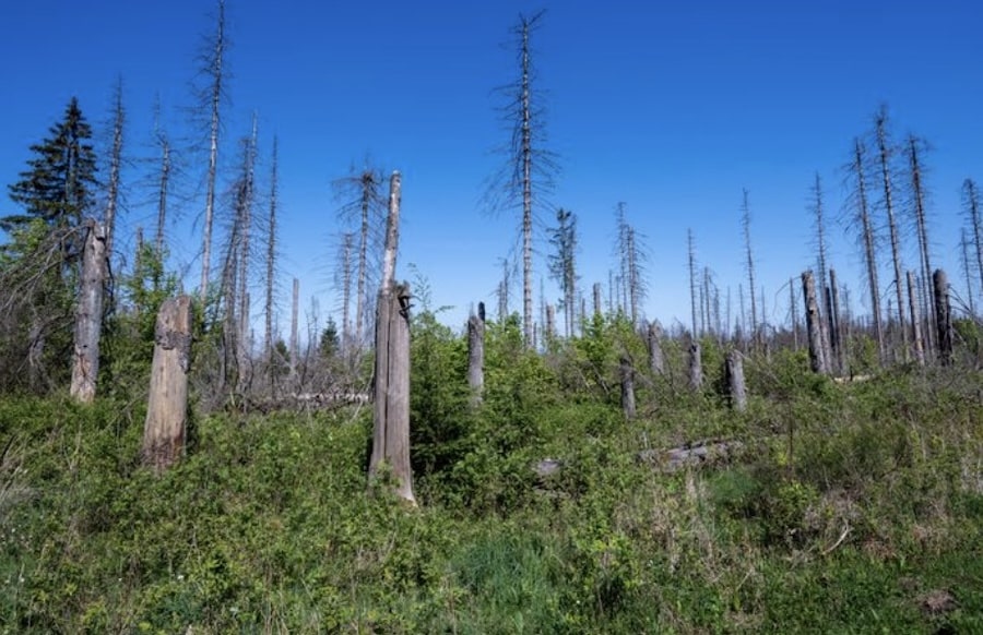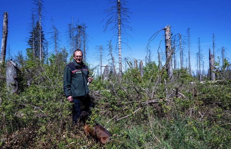 Ein Grund für den Turbo sind der Trockenstress und der Befall des Borkenkäfers in den vergangenen Jahren. Der Schädling vernichtet vor allem Fichten. Auch im Nationalpark: Von anfangs 3.000 Hektar Fichtenwäldern sind nur noch 1.000 Hektar übrig. Die Fichte ist kein heimischer Baum. Sie wurde ab dem 18. Jahrhundert und vor allem im 19. Jahrhundert dort stark angebaut.