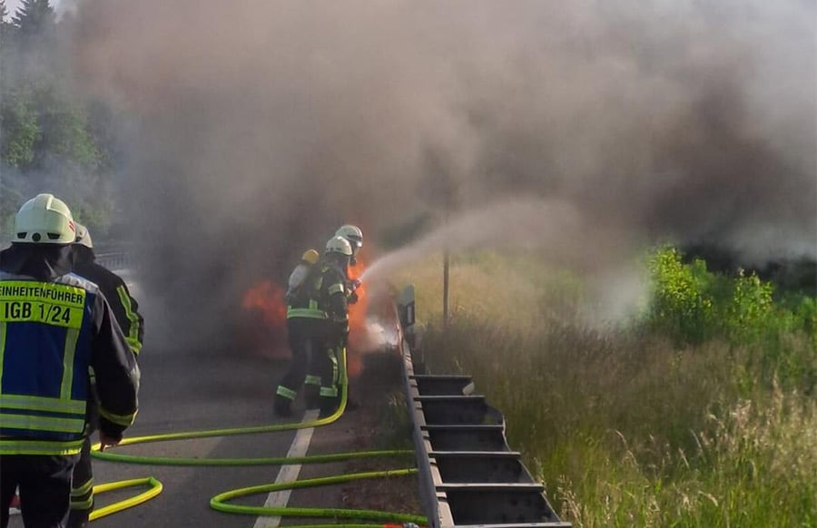 Der Reifenplatzer rief eine enorme Rauchentwicklung hervor. Der Fahrer des LKW (poln. Staatsangehöriger, 44 Jahre alt) konnte durch schnelles Handeln auf dem Standstreifen kurz hinter der AS Rohrbach die Zugmaschine von dem Auflieger abkoppeln, ehe der Auflieger in Vollbrand stand.