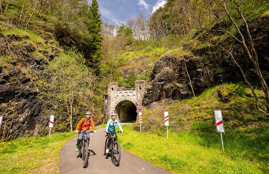 Zwischen Neuerburg und Enzen bleibt die Strecke vollständig für den motorisierten Verkehr gesperrt – ein sicheres, entspanntes Fahrvergnügen für Groß und Klein.