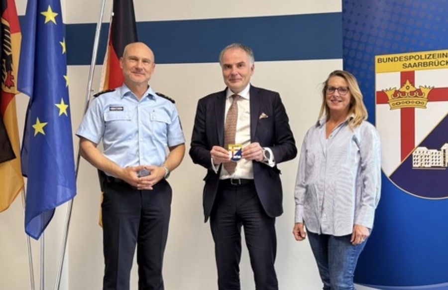 SAARBRÜCKEN. Am Mittwoch, den 21. Mai 2025, besuchte der neue Generalkonsul der Französischen Republik für das Saarland, Herr Jéròme Spinoza, im Rahmen seines Antrittsbesuches die Bundespolizeiinspektion Saarbrücken. Der Dienststellenleiter der Bundespolizei im Saarland, Polizeidirektor Robert Tachtler, begrüßte den französischen Generalkonsul am neuen Inspektionssitz der Landeshauptstadt.