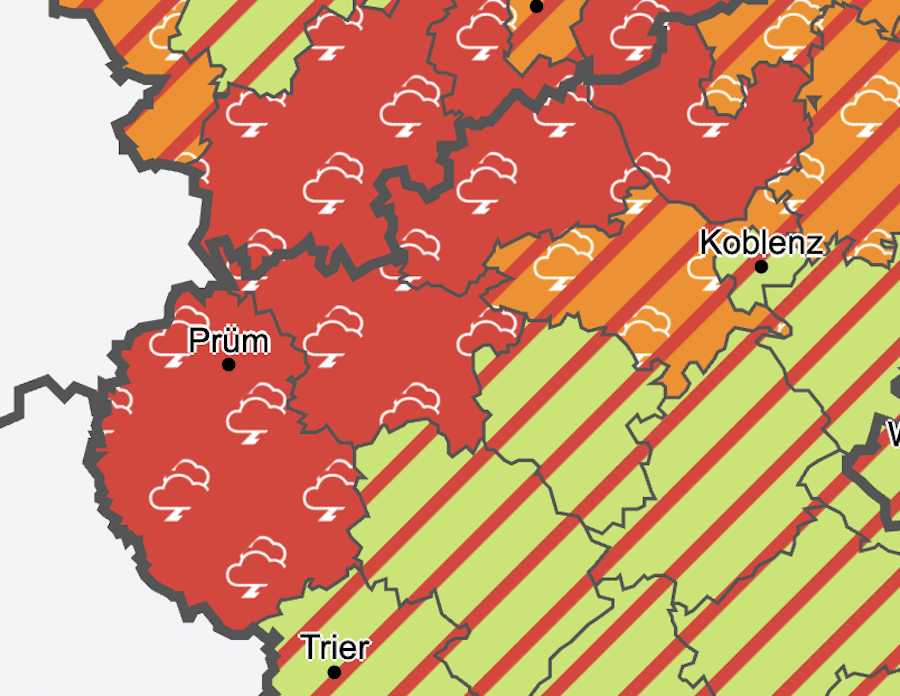 TRIER/EIFEL/MOSEL. Der Deutsche Wetterdienst (DWD) hat seine Prognosen konkretisiert und nun amtliche Unwetterwarnungen der Stufe 2 für Teile von Rheinland-Pfalz herausgegeben. Besonders betroffen sind der Eifelkreis Bitburg-Prüm sowie die Vulkaneifel. Aber auch der Raum Trier, die Moselregion sowie angrenzende Gebiete in Saarland und Hunsrück sind laut Vorabinformationen in erhöhter Alarmbereitschaft.