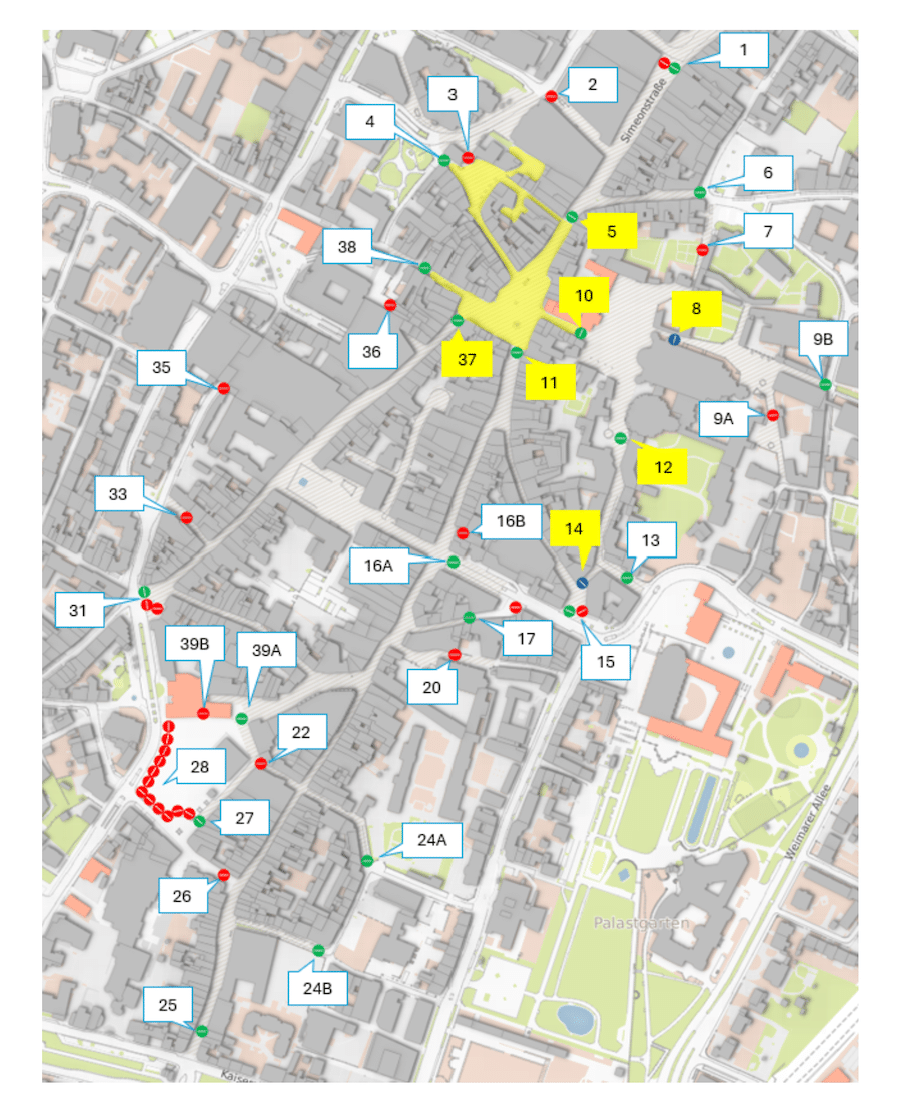 Außenring: umschließt die Innenstadt als schützende Steuerungszone. Er ersetzt viele der alten Pollerstandorte – zehn fallen weg, sieben bleiben erhalten, zwei davon an neuen Standorten. Ziel ist ein flüssiger Verkehrsfluss für Anlieger und Einsatzkräfte, ohne auf Sicherheit zu verzichten.