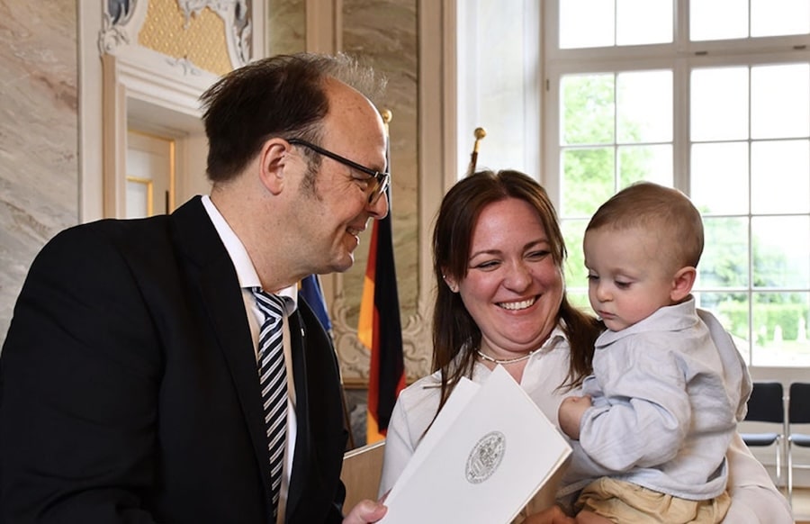 Begleitet von stimmungsvoller Klavier- und Saxofon-Musik wurde die Zeremonie zu einem bewegenden Moment für alle Anwesenden. Vor Beginn der Urkundenüberreichung sprachen alle gemeinsam das feierliche Bekenntnis zum Grundgesetz. Beigeordneter Ralf Britten übergab nicht nur die Urkunden, sondern richtete auch persönliche Worte an die neuen Staatsbürgerinnen und Staatsbürger: „Trier ist ein Ort des Austauschs und der Vielfalt. Diese Vielfalt ist nicht nur Reichtum, sondern auch Stärke. Wir wünschen uns, dass Sie, liebe Neubürgerinnen und Neubürger, diese Tradition mit uns in Gemeinschaft fortführen“.