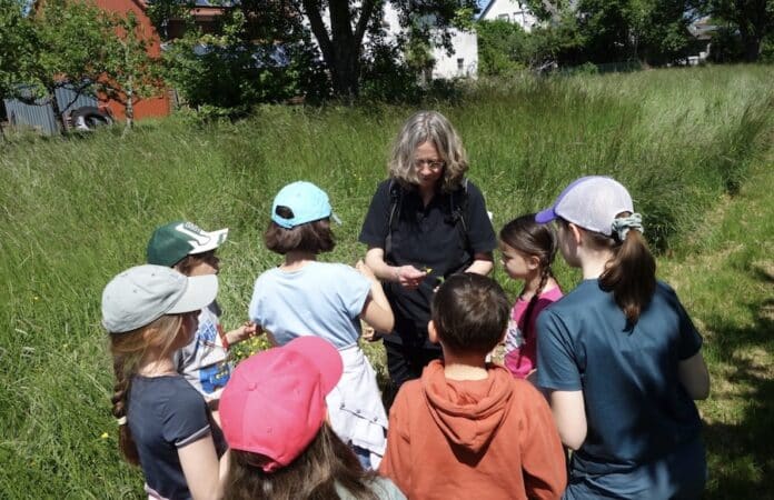 Insgesamt 14 Kräuter haben die Kinder bei dem Spaziergang gefunden. Zunächst wurden alle Funde gemeinsam mit Beate Stoff bestimmt. Neben bekannten Sorten wie Löwenzahn oder Klee fanden sich auch beispielsweise Hornkraut oder das Orangerote Habichtskraut.