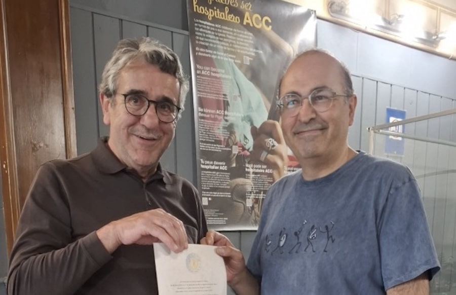 Brudermeister Hubert Schnabel und Spiritual Professor Dr. Martin Lörsch überreichten dem Vorsitzenden der Partnerorganisation, Juan Carlos Pérez Cabezas, die Urkunde zum Ehrenmitglied der Trierer Jakobusbruderschaft und ein Buchgeschenk. Pérez Cabezas wurde vor allem für sein großes Engagement für die Pilgerbewegung in Spanien ausgezeichnet. So ermöglichte er während der Corona-Pandemie durch eigene Hygienekonzepte, dass einige Pilgerherbergen entlang des Jakobsweges in Nordspanien trotz der Einschränkungen für Pilger offen blieben. Gemeinsam berieten die für die Jakobswege Engagierten aus Trier und Astorga über mögliche Zukunftsprojekte und eine Stärkung des Pilgergedankens. (Quelle: St. Jakobusbruderschaft Trier e.V.)