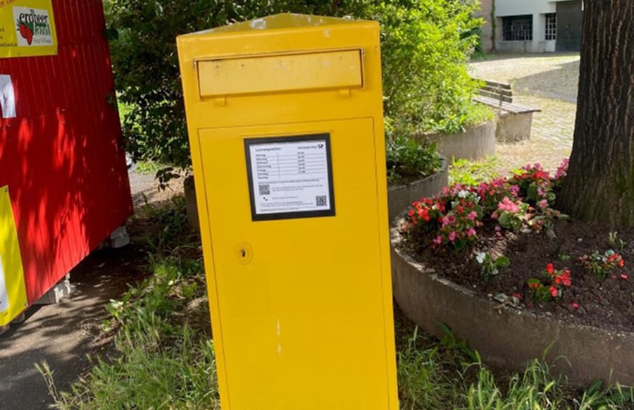 Die Deutsche Post DHL stattet ihre Briefkästen aktuell mit neuen Leerungsanzeigern aus. Neben den Leerungszeiten bietet das Unternehmen seinen Kundinnen und Kunden jetzt direkt auf den Briefkästen zusätzliche Produkt- und Standortinformationen an. „Versteckt“ sind diese Zusatzinformationen hinter zwei QR-Codes, die auf den neuen Leerungsanzeigern der Briefkästen angebracht sind. Der Matrixcode links bietet Informationen zu Briefprodukten, Regellaufzeiten und Preisen. Und über den Matrixcode unten rechts gelangt man zur Anzeige weiterer Standorte. Auch die gezielte Suche nach bestimmten Standorten ist so möglich. „Damit bieten wir unseren Kund:innen nun die Möglichkeit sich direkt am Briefkasten über häufig gestellte Fragen zu Preisen, Laufzeiten, Produkten und weiteren Standorten in der Nähe zu informieren.