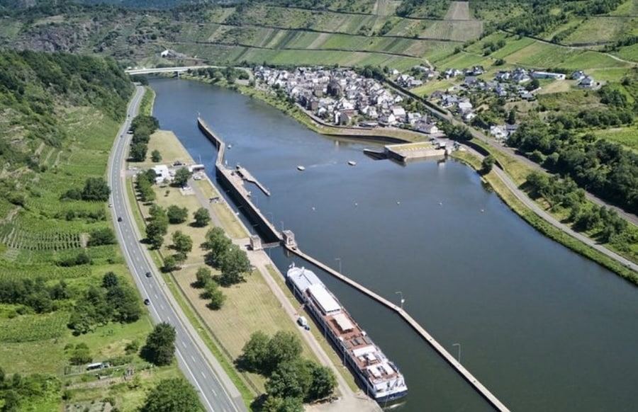 «Der guckt das Tor von beiden Seiten an und macht auch Fotos», sagte er. «Es sieht sehr gut aus, dass wir dann eventuell mit der ersten Bergschleusung anfangen können.» Direkt vor der Schleuse warteten schon drei Schiffe, er selbst wisse von insgesamt 25 Schiffen, die auf eine Schleusung in diese Richtung warteten. «Die Schiffe warten bis in den Rhein rein.»