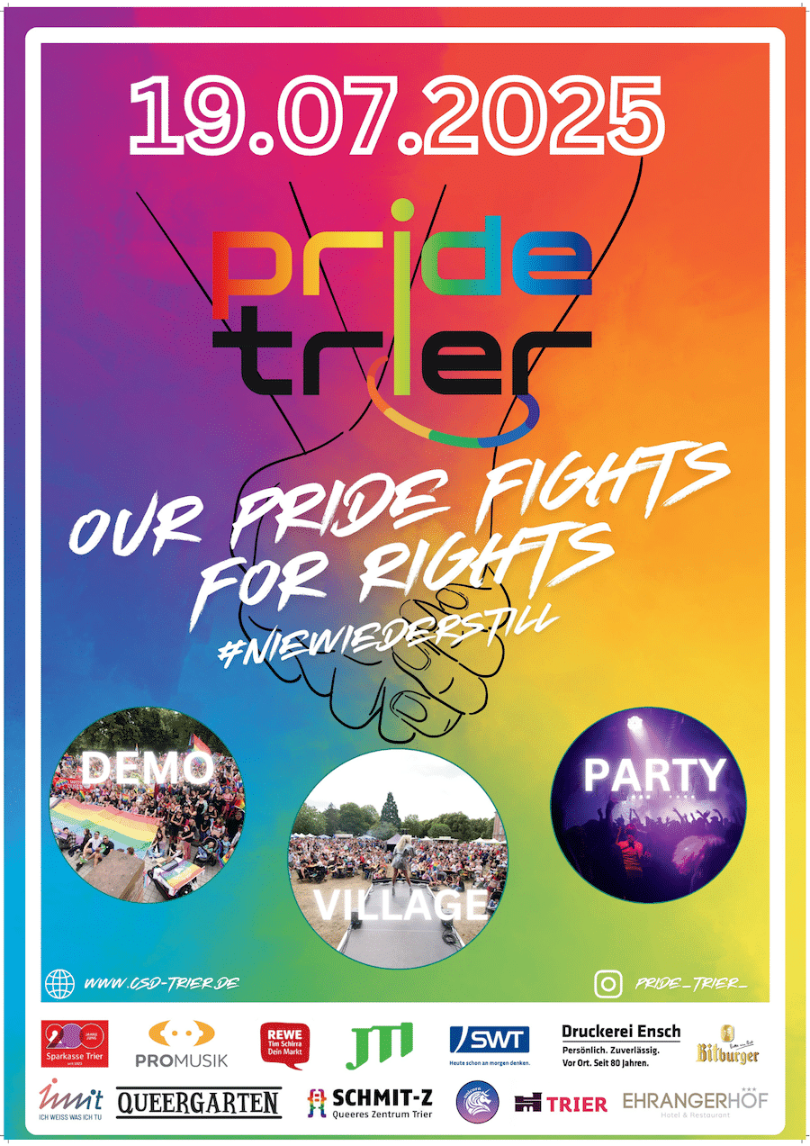 Trier. Bunt, laut und politisch: Am Samstag, 19. Juli, lädt die Pride Trier 2025 alle Menschen ein, gemeinsam für Vielfalt, Gleichberechtigung und Menschenrechte auf die Straße zu gehen. Unter dem Motto „Our Pride fights for rights“ setzen die Veranstalter ein klares Zeichen gegen Diskriminierung.