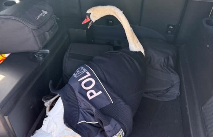 Nachdem der Streckenabschnitt für den Zugverkehr gesperrt war, fingen Polizisten den Schwan ein. Im Kofferraum des Streifenwagens konnte sich das Tier den Angaben nach etwas erholen – die Beamten organisierten in der Zwischenzeit eine Pflegestelle. Der Verkehr wurde nach dem tierischen Zwischenfall wieder freigegeben.