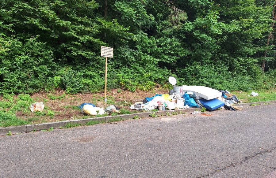 Das hab ich mich auch schon gefragt, warum man da nicht so etwas wie eine Wildkamera installiert. Und natürlich – wenn das da auch so liegen bleibt, wird doch nur noch mehr dazu gestellt.