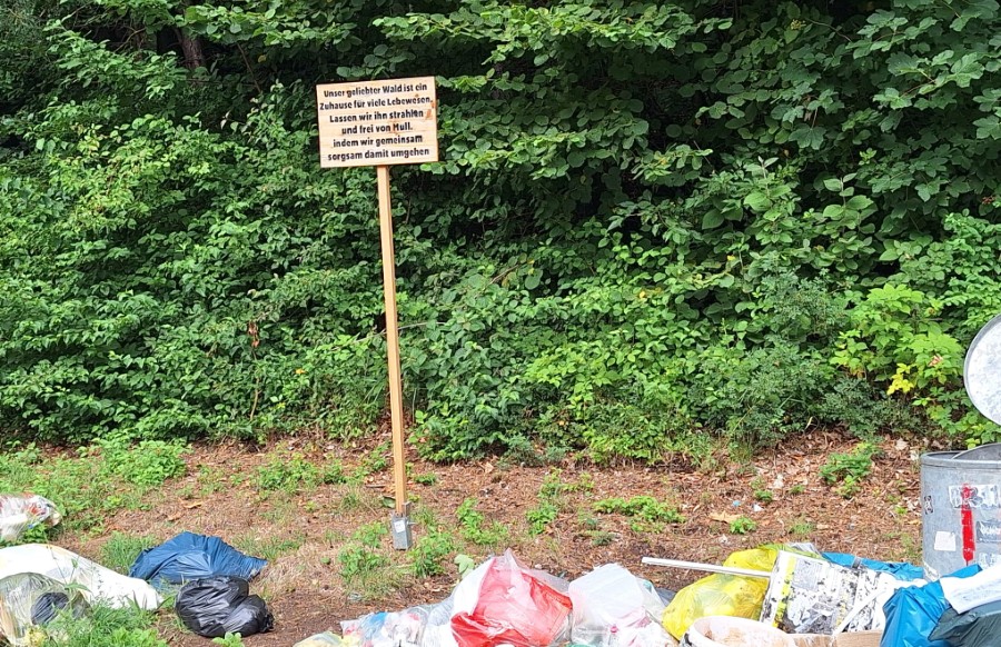 Selbst wenn – darauf achtet doch kein Mensch. Und die, die ihren Müll extra DORT mit hoch nehmen, denen ist das Schild auch herzlich egal.