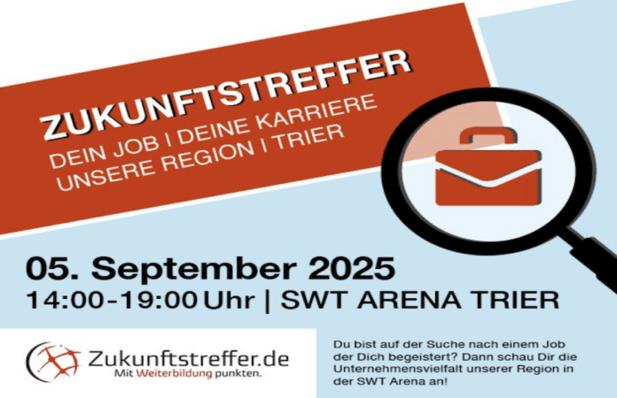TRIER. Wer heute im Berufsleben bestehen will, braucht mehr als nur eine gute Grundausbildung – stetiges Lernen, neue Qualifikationen und die Bereitschaft, sich weiterzuentwickeln, sind gefragt wie nie. Passend dazu lädt die Job- und Weiterbildungsmesse „Zukunftstreffer – DEIN JOB | DEINE KARRIERE | UNSERE REGION | TRIER am 5. September 2025 in die SWT Arena Trier ein.