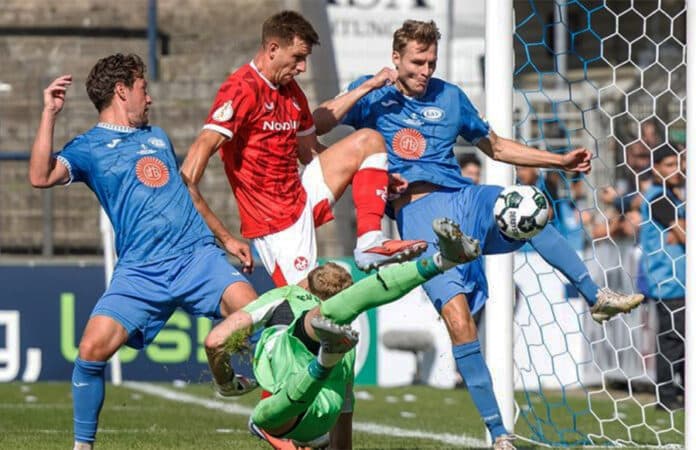 Neun Minuten später war die Vorentscheidung zu Gunsten der drückend überlegenen Mannschaft von Trainer Torsten Lieberknecht gefallen. Nach einer Ecke von Kapitän Marlon Ritter köpfte Jisoo Kim zum 3:0 ein. Daniel Hanslick (34.) nach einem Konter sorgte für die frühe Vorentscheidung. Die Hausherren dagegen tauchten nicht ein einziges Mal gefährlich vor Lauterns Schlussmann Julian Krahl auf.