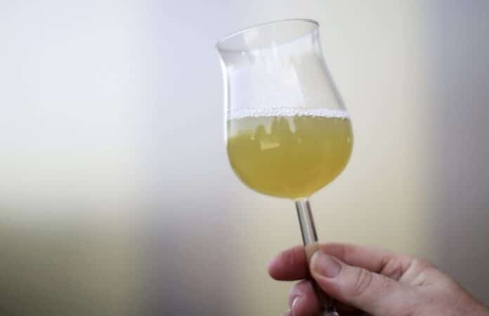Besondere Merkmale: Trüb und prickelnd und nur halbfertig
