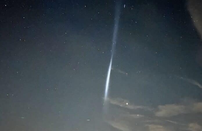 Zuerst hatte Cenap – das Centrale Erforschungsnetz außergewöhnlicher Himmelsphänomene – auch an Satelliten des Satelliten-Kommunikationsdienst Starlink als Auslöser gedacht. Denn zeitgleich seien neue Starlink-Satelliten ins All gebracht worden, die dann hintereinander liegende Lichtpunkte erzeugen – aber eben keine Lichtstreifen wie in diesem Falle. «Die Fotos, die wir von dem Lichtstreifen erhielten, passten nicht zu solchen Lichtpunkten», sagte Köhler. Schnell sei daher klar gewesen, dass die chinesische Trägerrakete das Phänomen verursacht habe. (Quelle: dpa)