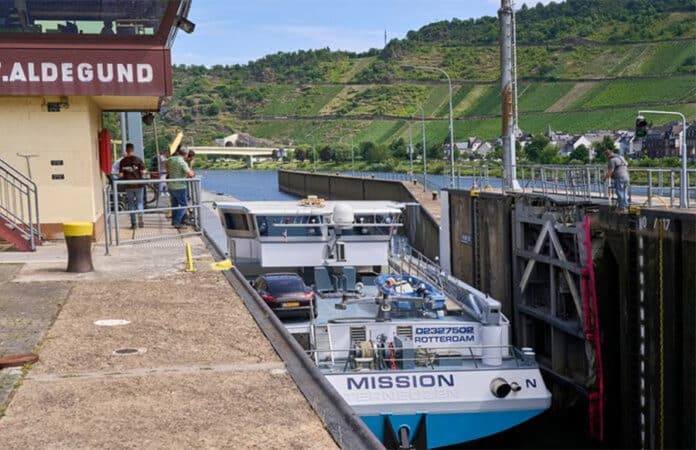 Die Schleuse in St. Aldegund läuft wieder im Notbetrieb. Foto: Sascha Ditscher/dpa