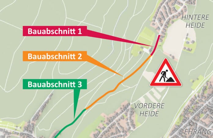 - Gesperrt: Von der Einmündung Vordere Heide bis zur Einmündung Im Dreier.