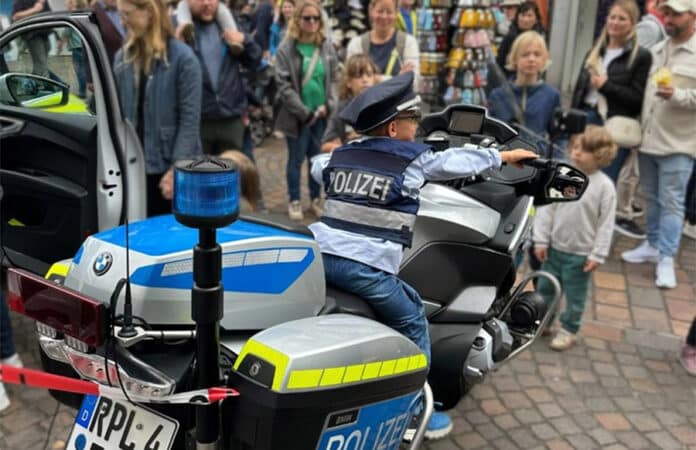 Unter den zahlreichen Angeboten durfte auch ein Stand des Polizeipräsidiums Trier nicht fehlen. Von 10 bis 18 Uhr konnten sich die kleinen Nachwuchskräfte als echte Polizistinnen und Polizisten verkleiden.