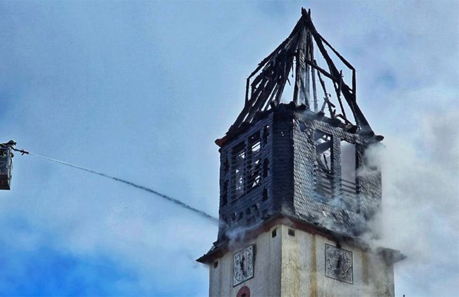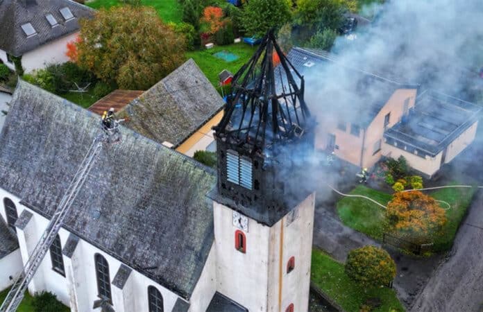 PETERSWALD-LÖFFELSCHEID – Im Dachstuhl eines Kirchturms in Peterswald-Löffelscheid (Kreis Cochem-Zell) ist ein Feuer ausgebrochen. Der Dachstuhl habe in Vollbrand gestanden, sagte ein Sprecher der Polizei in Zell.