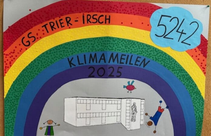 Kinder der Grundschulen Trier-Irsch, Trier-Quint, Trier-Barbara und die freie Montessori Schule Trier, sowie der Kindertagesstätten St. Martin, St. Clemens, Wichernhaus und die KiTa Naseweis aus Hirschhorn haben dabei insgesamt 9379 grüne Meilen gesammelt.