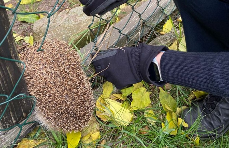 HAẞLOCH – In Haßloch (Kreis Bad Dürkheim) haben Polizeibeamte einen Igel aus einem Maschendrahtzaun befreit.