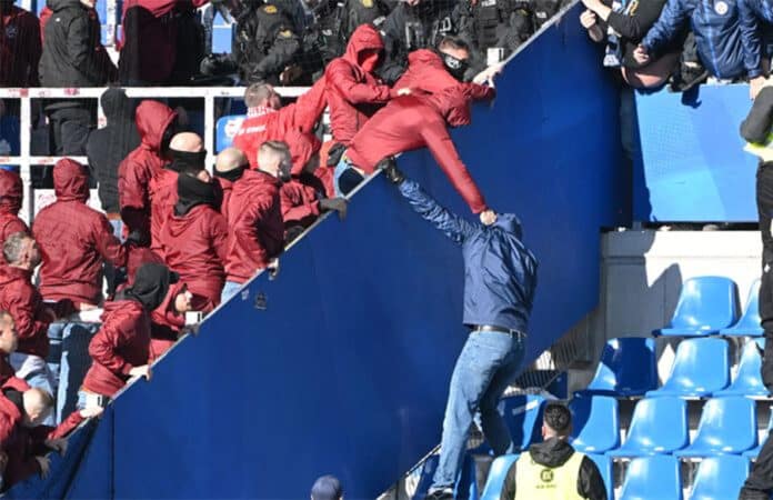 KARLSRUHE/KAISERSLAUTERN – Bei den Ausschreitungen nach dem Südwest-Derby zwischen dem Karlsruher SC und dem 1. FC Kaiserslautern sind mindestens sechs Personen verletzt worden.
