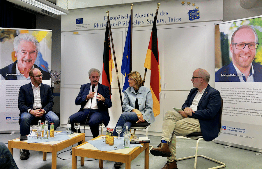 Jean Asselborns Biographie „Die Tour seines Lebens“ ist weit mehr als ein Rückblick – sie ist ein Plädoyer für Verantwortung, Haltung und Menschlichkeit. In Trier wurde sie zu einem Appell für Europa – getragen von zwei Persönlichkeiten, die ihren Glauben an Demokratie und Zusammenhalt nie verloren haben. Die Biographie „Jean Asselborn – Die Tour seines Lebens“ von Michael Merten ist im Buchhandel erhältlich.