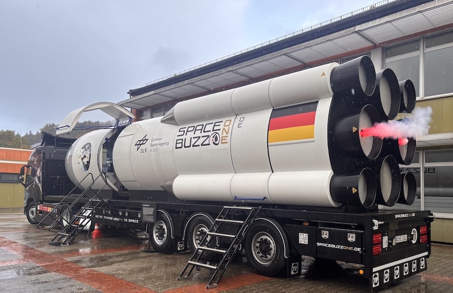In nur 15 Minuten ging es einmal rund um die Erde, weiter zum Mond und wieder zurück – und das im beeindruckenden SPACEBUZZ ONE, einem High-Tech-LKW, der äußerlich einer Rakete ähnelt und im Inneren modernste Virtual-Reality-Technologie beherbergt. Präsentiert wurde dieses faszinierende Projekt vom Deutschen Zentrum für Luft- & Raumfahrt (DLR).
