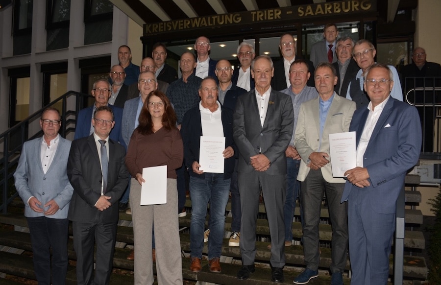 Rainer Hansen aus Zerf trat 2004 in den Ortsgemeinderat sowie 2014 in den Verbandsgemeinderat ein und ist seit 2019 Ortsbürgermeister. Sogar seit 2002 ist Manfred Rauber Ortsbürgermeister von Waldweiler, viele Jahre Mitglied im Verbandsgemeinderat und seit 30 Jahren Vorsitzender der Reservistenvereinigung. Schließlich erhielt Hans-Georg Götze aus Saarburg-Kahren die Ehrennadel für 15 Jahre Mitgliedschaft in Ortsbeirat, Stadtrat und Verbandsgemeinderat, aber auch als langjähriger Vorsitzender der Arbeiterwohlfahrt Saarburg. (Quelle: Kreisverwaltung Trier-Saarburg)