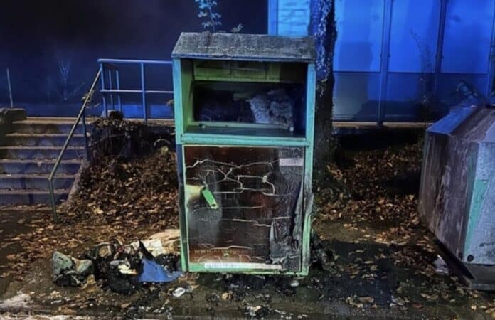 BRIEDEL. Am Abend des 12.11.2025, gegen 23.48 Uhr, wurde bei der Rettungsleitstelle Koblenz der Brand eines Altkleidercontainers in der Moselstraße in Briedel gemeldet.
