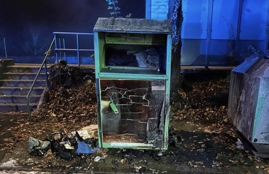 Das Feuer konnte durch die örtliche Feuerwehr schnell unter Kontrolle gebracht und gelöscht werden. Dennoch wurde der Altkleidercontainer durch das Feuer erheblich beschädigt.
