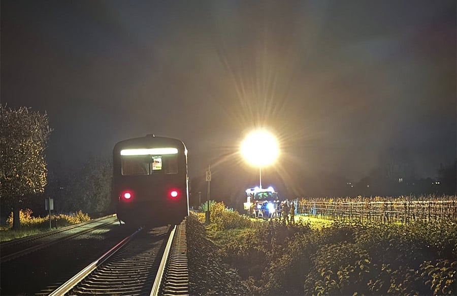 Den Angaben nach geschah der Unfall am Mittwochabend auf freier Strecke hinter der Haltestelle Maikammer-Kirrweiler. Die 17 Reisenden in der RE 6 blieben unverletzt. Die Gleise waren für rund zweieinhalb Stunden gesperrt, was zu Verspätungen und Ausfällen im Bahnverkehr führte.